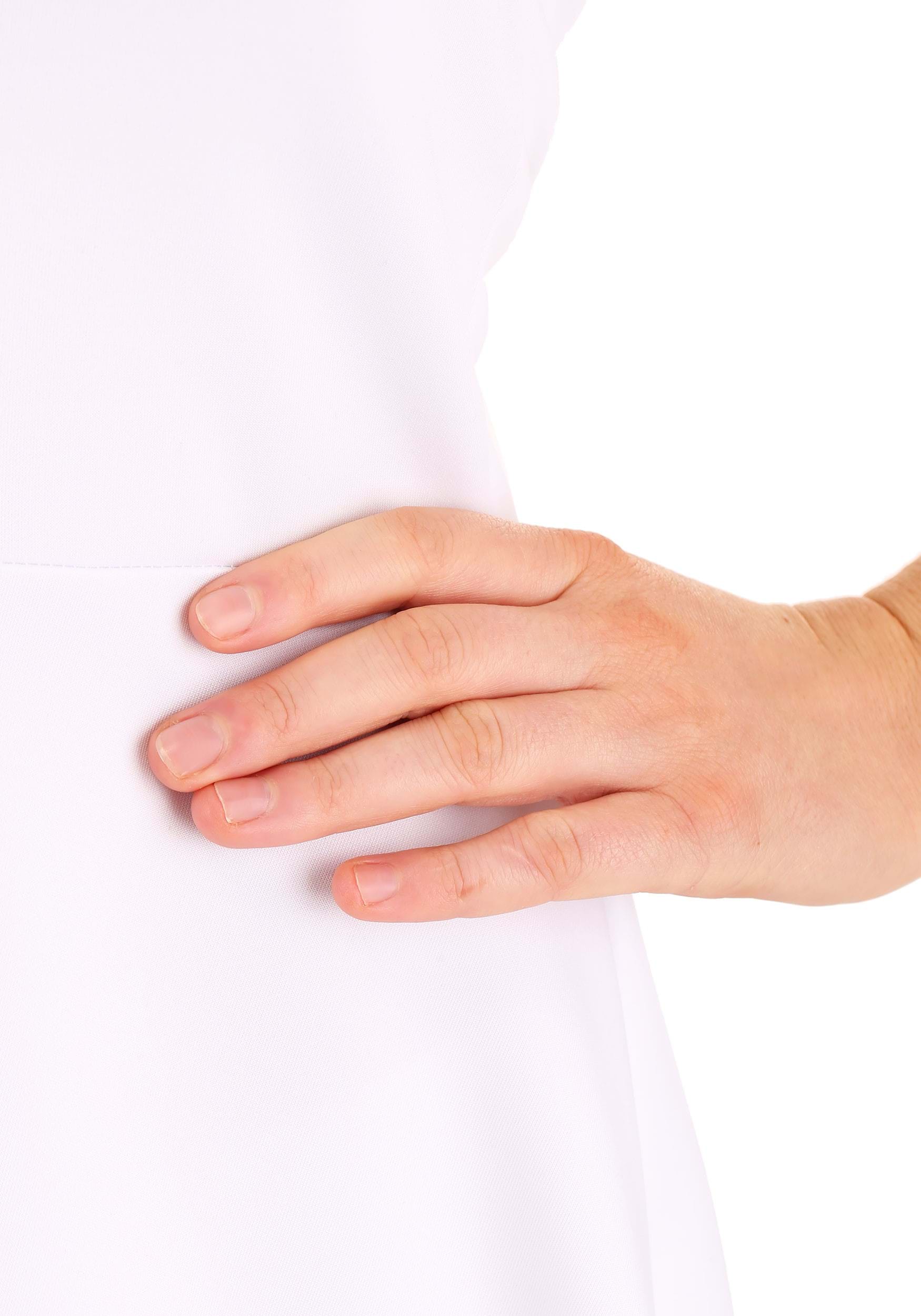 - Poly double knit dress, uneven hemline
