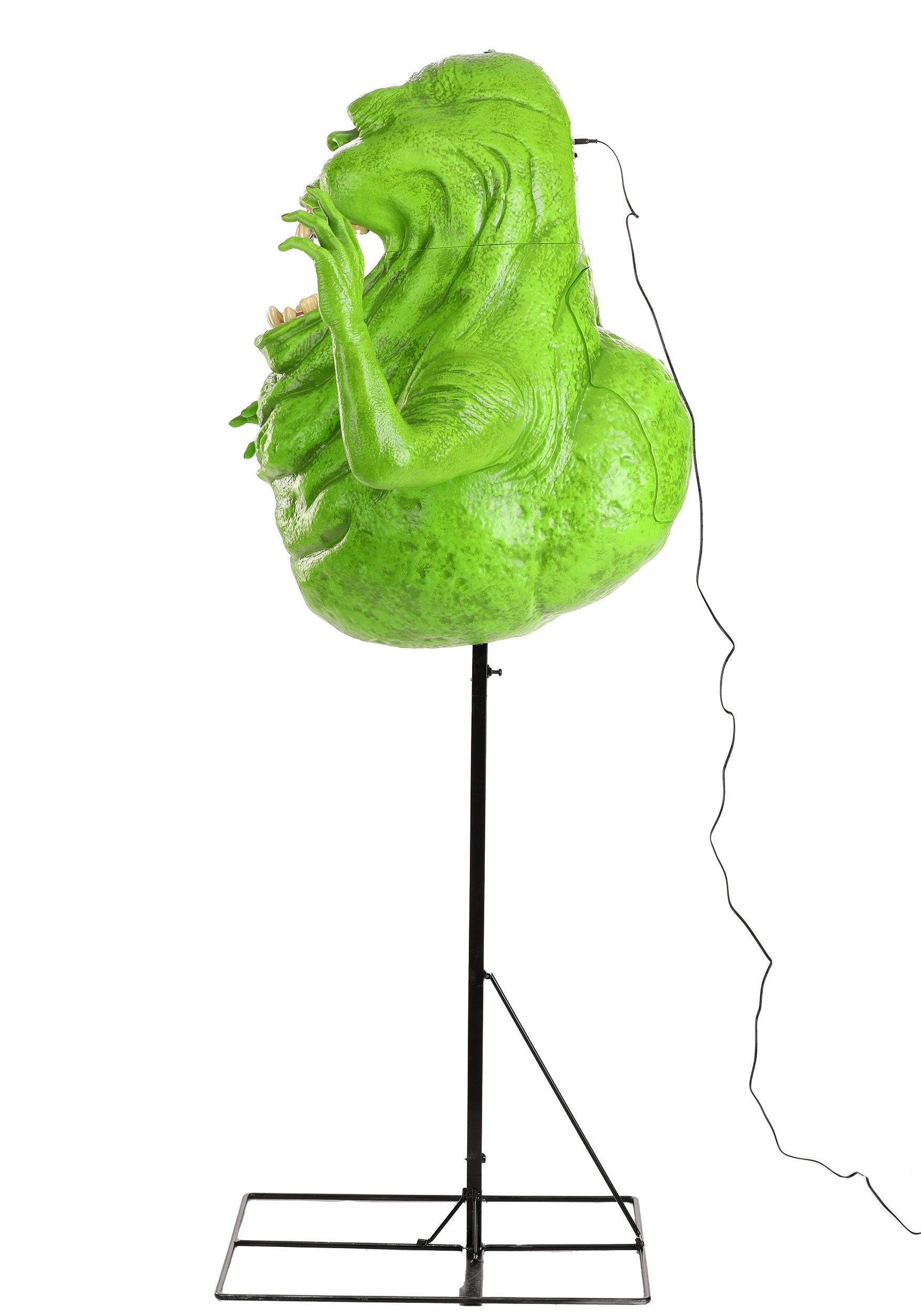 The animated Ghostbusters décor captures the green ghost in all his glory! The prop is molded and shaped into Slimer's green gelatinous-looking body, complete with texturing to give him a genuinely life-like (or maybe UN-life-like) appearance. The prop also recreates his mischievous grin with realistic teeth. Slimer sits on a sturdy stand, making him easy to place anywhere. The stand keeps him perfectly situated a 60 inches in the air, so he's hard for any guest to miss!