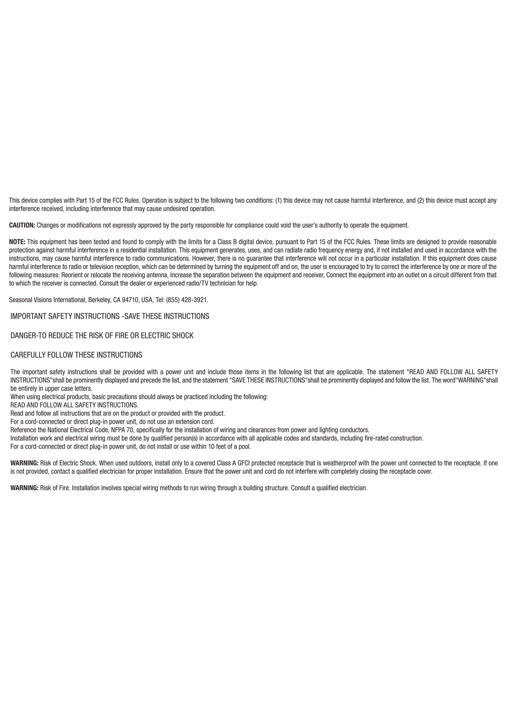 - If used outdoors, must be plugged into a GFCI (ground fault circuit interrupter) outlet